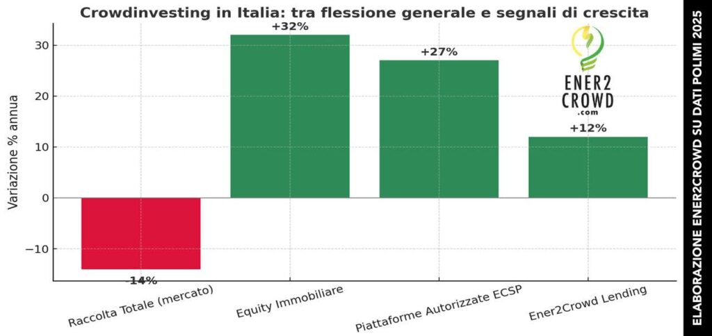 Ener2Crowd, la piattaforma ed app numero uno in Italia per gli investimenti ESG, conferma l’accuratezza delle rilevazioni del Politecnico di Milano (Polimi), ma offre una chiave di lettura differente, che evidenzia come dietro questo dato complessivo si nascondano segnali concreti di resilienza e di crescita.